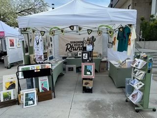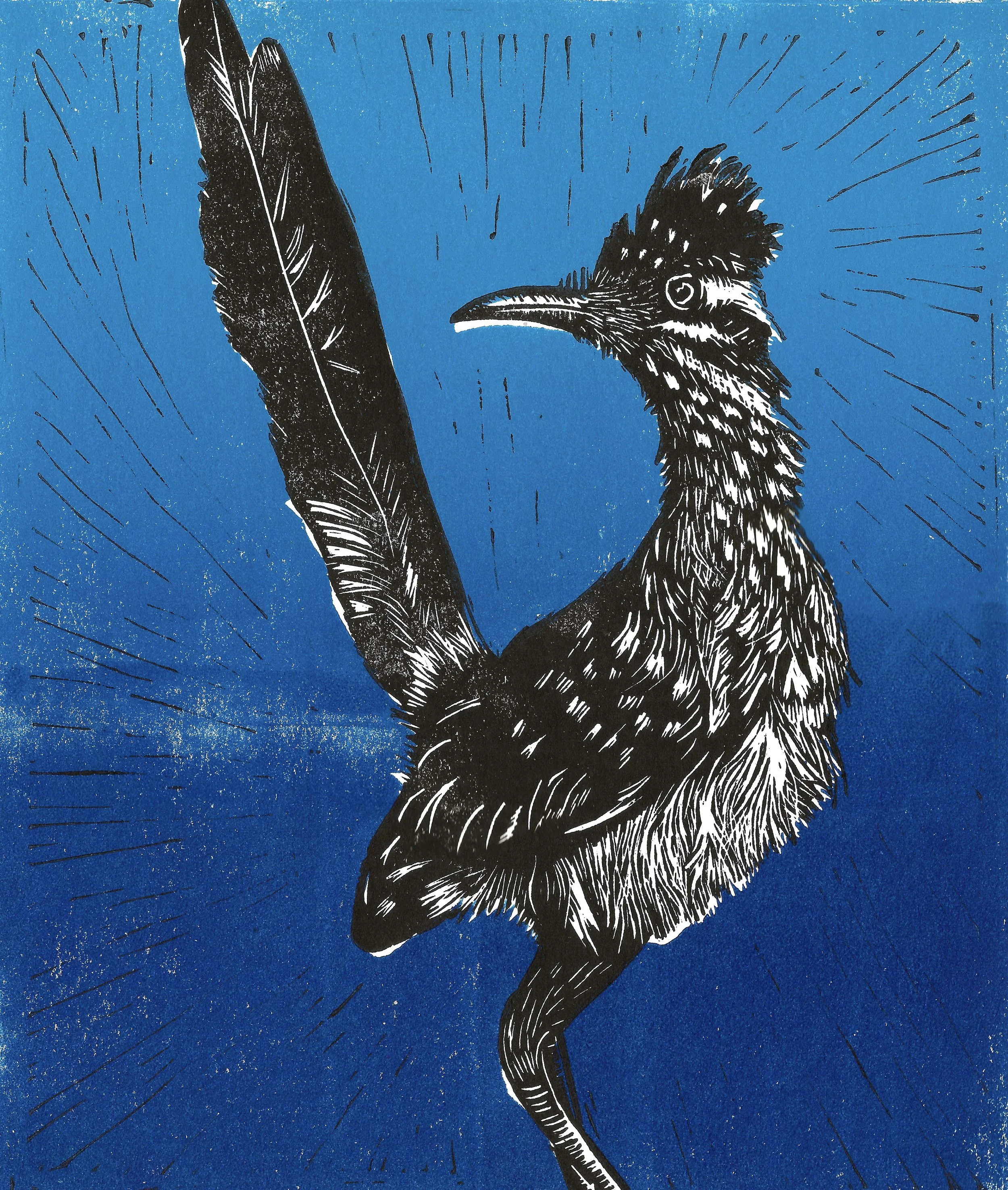 Printer Mark Zepezauer and assemblage artist Nan Lagemann have been collaborating for years on mosaics, painted furniture, and glass totems for the sheer fun of it. Since retiring from teaching, Mark has set up a home studio and has produced a series of linocuts featuring animals and plants of the Sonoran Desert. They call their arts collective Sonoran Desert Rhino after a mythical creature they used to amuse their kids at story time.